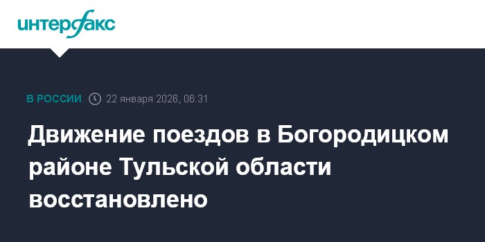 Москва. 22 января. INTERFAX.RU - Движение поездов в Богородицком районе Тульской области восстановили после произошедшего накануне схода вагонов, сообщает в четверг региональный МЧС.