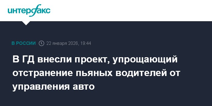 Москва. 22 января. INTERFAX.RU - Правительство внесло в Госдуму изменения, упрощающие для ГИБДД отстранение пьяных водителей от управления транспортным средством.