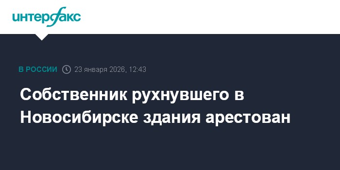 Москва. 23 января. INTERFAX.RU - Первомайский районный суд Новосибирска в пятницу избрал меру пресечения владельцу торгового комплекса, обрушившегося в среду, сообщили "Интерфаксу" в прокуратуре региона.