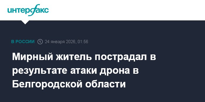 Москва. 24 января. INTERFAX.RU - Беспилотник ВСУ атаковаль автомобиль в Борисовском округе Белгородской области, ранен мужчина, сообщил губернатор Вячеслав Гладков вечером в пятницу.