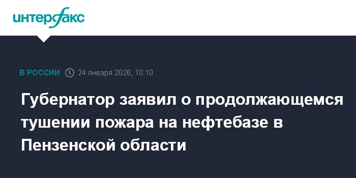 Москва. 24 января. INTERFAX.RU - Специалисты продолжают тушить пожар на нефтебазе в Пензенской области, вызванный падением обломков беспилотника, сообщил губернатор региона Олег Мельниченко в субботу.