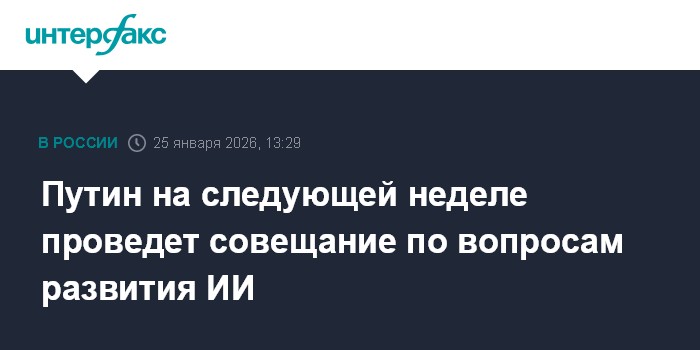 Москва. 25 января. INTERFAX.RU - Президент РФ Владимир Путин на будущей неделе проведет совещание по вопросам развития искусственного интеллекта, а также совершит региональную поездку.