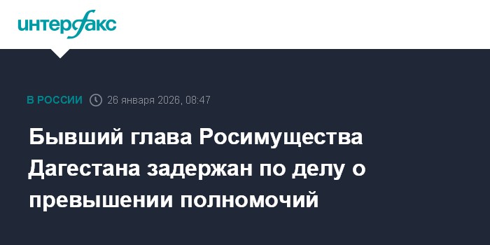 Москва. 26 января. INTERFAX.RU - Бывший глава территориального управления Росимущества по Дагестану задержан по уголовному делу о превышении полномочий, сообщило региональное управление СКР. Меру пресечения ему еще не выбрали.