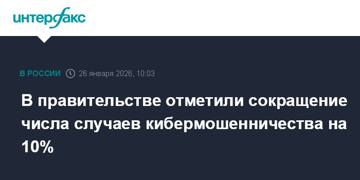 Москва. 26 января. INTERFAX.RU - Количество случаев мошенничества в интернете за десять месяцев 2025 года снизилось на 10%, по сравнению с аналогичным предыдущим периодом, сообщили в аппарате вице-премьера Дмитрия Григоренко.