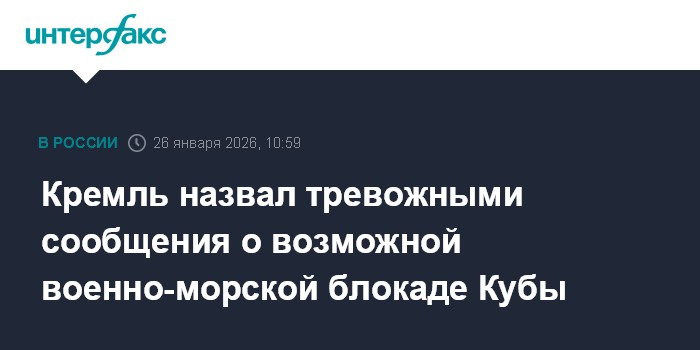 Москва. 26 января. INTERFAX.RU - В Кремле назвали тревожной информацию о возможной военно-морской блокаде Кубы со стороны США.