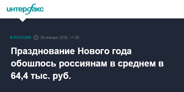 Москва. 26 января. INTERFAX.RU - Средние траты россиян на празднование Нового года из расчета на одного человека составили 64 459 рублей, что практически полностью соответствует расходам год назад - 64 439 рублей, свидетельствуют данные опроса Аналитического центра ВЦИОМ.
