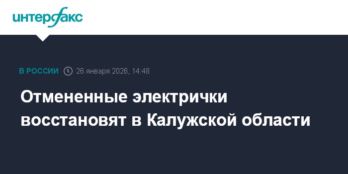 Москва. 26 января. INTERFAX.RU - Отмененные в начале года рейсы электричек из Калуги в Москву и обратно восстановят в Калужской области после совещаний с Центральной пригородной пассажирской компанией, сообщил губернатор региона Владислав Шапша в своем телеграм-канале.