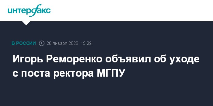 Москва. 26 января. INTERFAX.RU - Ректор Московского городского педагогического университета (МГПУ) Игорь Реморенко объявил о своей отставке.