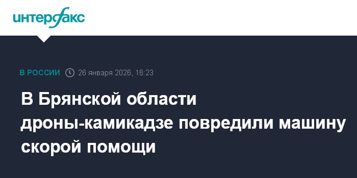 Москва. 26 января. INTERFAX.RU - В Климовском районе Брянской области дроны-камикадзе атаковали машину скорой помощи в селе Чуровичи, сообщил губернатор региона Александр Богомаз.