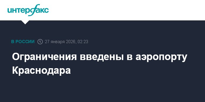 Москва. 27 января. INTERFAX.RU - Временные ограничения на прием и выпуск воздушных судов введены в аэропорту Краснодара, сообщила Росавиация в своем телеграм-канале.