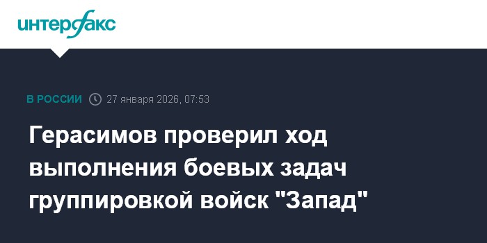 Москва. 27 января. INTERFAX.RU - Начальник Генерального штаба Вооруженных Сил РФ генерал армии Валерий Герасимов проверил ход выполнения боевых задач соединениями и воинскими частями группировки войск "Запад" в зоне проведения специальной военной операции, заявили в Минобороны РФ.