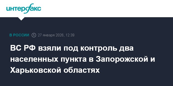 ВС РФ взяли под контроль два населенных пункта в Запорожской и Харьковской областях