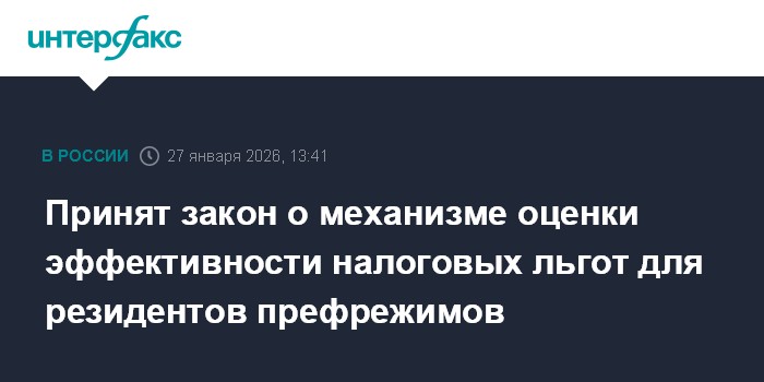 Принят закон о механизме оценки эффективности налоговых льгот для резидентов префрежимов