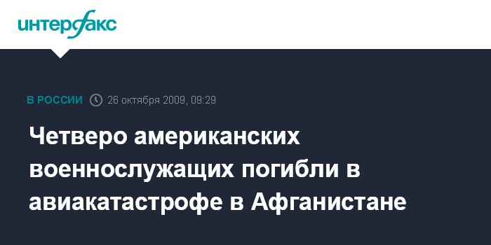 Четверо американских военнослужащих погибли в авиакатастрофе в Афганистане