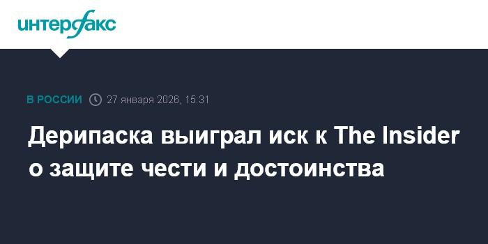 Москва. 27 января. INTERFAX.RU - Арбитражный суд Москвы удовлетворил требования Олега Дерипаски к изданию The Insider (признано иноагентом и нежелательной организацией) о защите чести и достоинства, сообщил "Интерфаксу" адвокат бизнесмена Алексей Мельников.