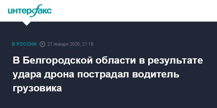 Москва. 27 января. INTERFAX.RU - В Борисовском округе Белгородской области дрон ударил по грузовику в селе Зозули, пострадал водитель, сообщил губернатор Вячеслав Гладков.