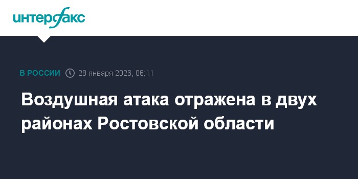 Москва. 28 января. INTERFAX.RU - Губернатор Ростовской области Юрий Слюсарь сообщил об отражении воздушной атаки в Азовском и Чертковском районах региона.