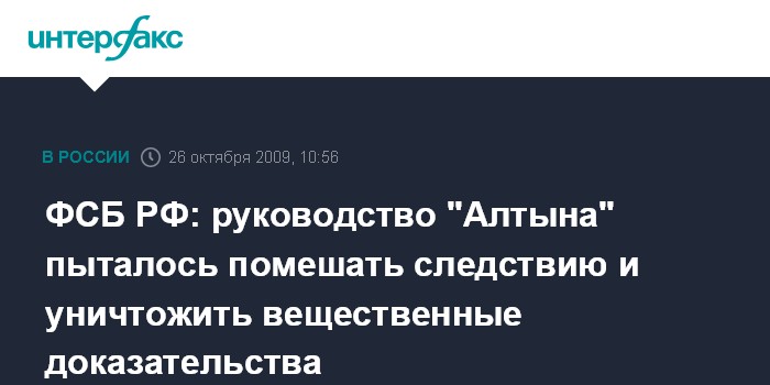 ФСБ РФ: руководство "Алтына" пыталось помешать следствию и уничтожить вещественные доказательства