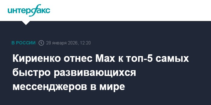 Москва. 28 января. INTERFAX.RU - Национальный мессенджер Max вошел в пятерку наиболее быстро развивающихся сервисов в мире, число его пользователей к концу этой недели достигнет 90 млн человек, сообщил первый замглавы администрации президента РФ Сергей Кириенко.