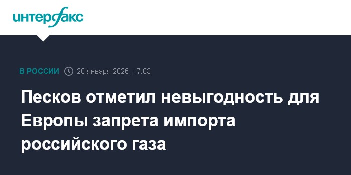 Москва. 28 января. INTERFAX.RU - Европа, планируя с 2027 года запретить импорт газа из России, сама обрекает себя на зависимость от небольшого количества источников этого энергоносителя, в первую очередь США, которые продают газ задорого, заявил пресс-секретарь президента России Дмитрий Песков.