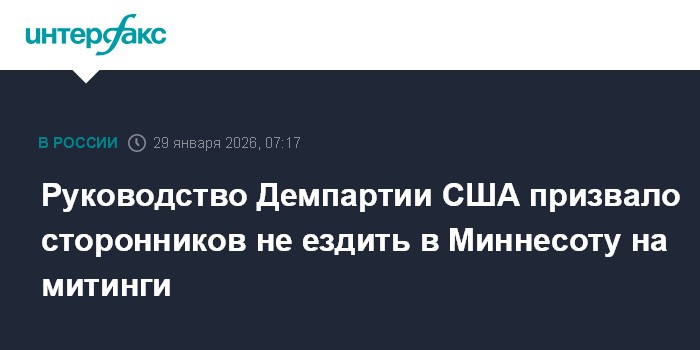 Москва. 29 января. INTERFAX.RU - Руководство Демократической партии в Палате представителей посоветовало однопартийцам не ездить в Миннесоту, чтобы поддержать там протестующих против действий Иммиграционной и таможенной полиции США (ICE), сообщает Axios.