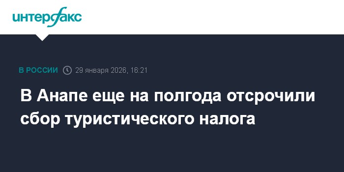 Москва. 29 января. INTERFAX.RU - Власти Анапы решили продлить отсрочку взимания туристического налога на курорте по 30 июня включительно, сообщает пресс-служба мэрии города.