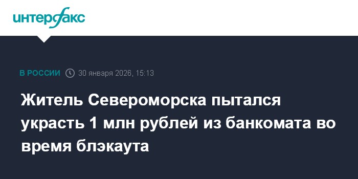 Житель Североморска пытался украсть 1 млн рублей из банкомата во время блэкаута