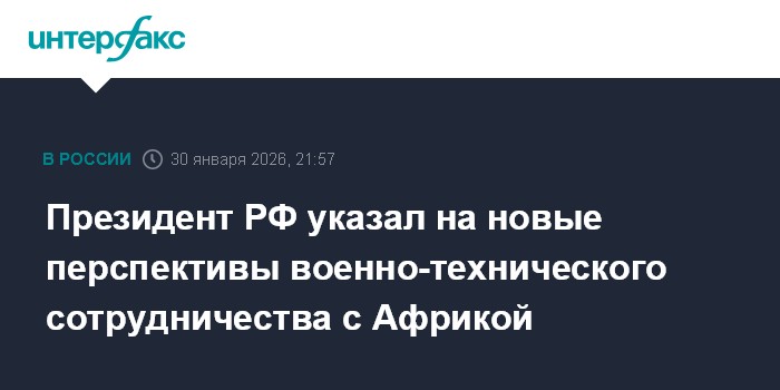 Москва. 30 января. INTERFAX.RU - Президент РФ Владимир Путин заявил о новых перспективах углубления военно-технического сотрудничества с Африкой.