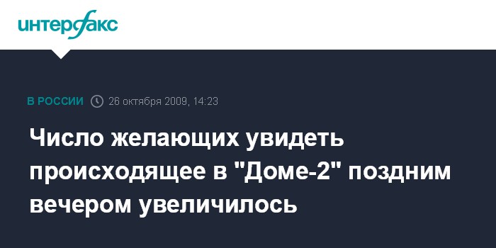 Москва. 26 октября. INTERFAX.RU - Программа "Дом-2" после судебного запрета выходить в эфир не ранее 23:00 улучшила показатели зрительского внимания.