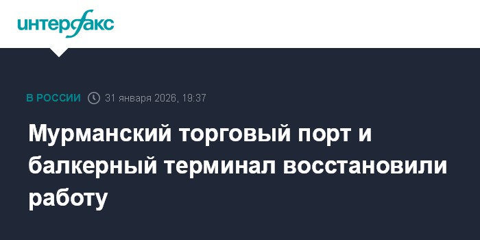 Москва. 31 января. INTERFAX.RU - ООО "Мурманский балкерный терминал" и АО "Мурманский морской торговый порт" (МБТ, и ММТП, находятся под управлением АО "Портовый альянс") вернулись к работе после временной приостановки из-за перебоев электроснабжения в Мурманске и ЗАТО Североморск в субботу.