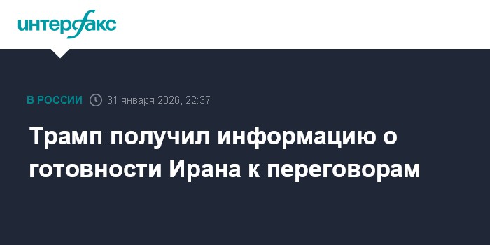 Москва. 31 января. INTERFAX.RU - США получили от союзников информацию о готовности Ирана к переговорам по спорным вопросам, заявил в субботу американский президент Дональд Трамп.