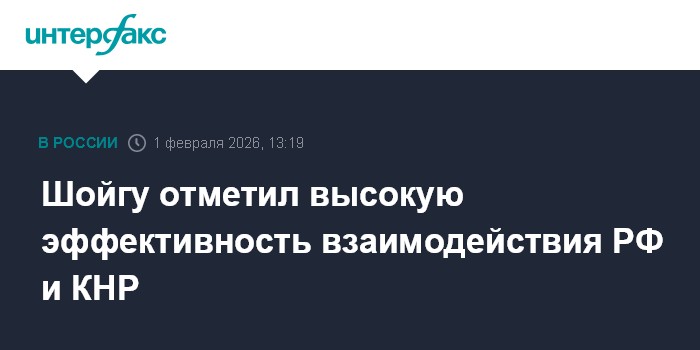 Шойгу отметил высокую эффективность взаимодействия РФ и КНР