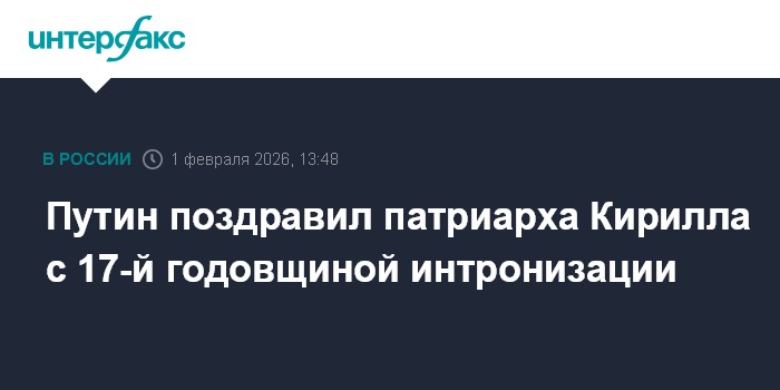 Москва. 1 февраля. INTERFAX.RU - Президент РФ Владимир Путин лично поздравил патриарха Московского и всея Руси Кирилла с 17-й годовщиной интронизации, отметив личные заслуги и достижения предстоятеля Русской православной церкви в ее жизни.