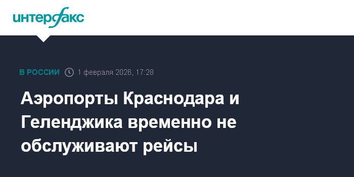 "Аэропорты Геленджик, Краснодар. Введены временные ограничения на прием и выпуск воздушных судов", - говорится в сообщении.