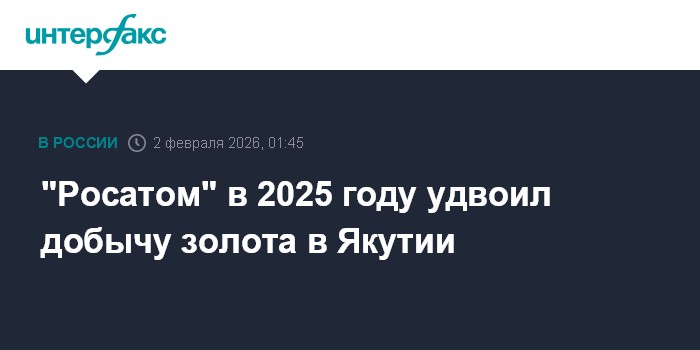 Москва. 2 февраля. INTERFAX.RU - "Росатом" в 2025 году начал промышленную эксплуатацию золоторудного месторождения Северное в Якутии и добыл там 1,5 тонны золота, сообщила компания.