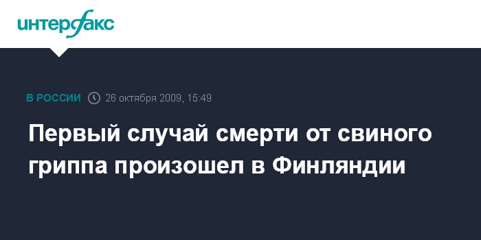 Москва. 26 октября. INTERFAX.RU - Финские медики сообщили в понедельник о первом в стране случае смерти человека от гриппа A/H1N1.