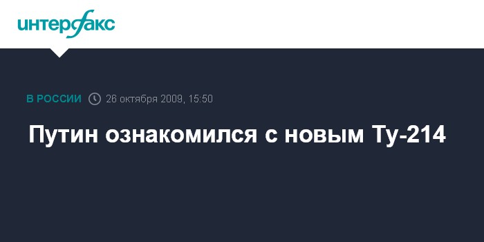 Москва. 26 октября. INTERFAX.RU - Премьер-министр РФ Владимир Путин перед отлетом из Петербурга в понедельник осмотрел новый самолет Ту-214.