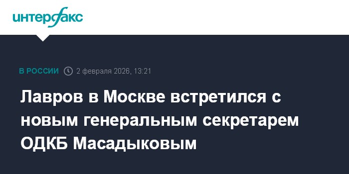 Москва. 2 февраля. INTERFAX.RU - Министр иностранных дел России Сергей Лавров в Москве проводит встречу с новым генеральным секретарем ОДКБ Таалатбеком Масадыковым.