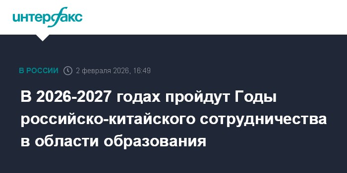Москва. 2 февраля. INTERFAX.RU - Президент Владимир Путин распорядился провести в 2026-2027 годах Годы российско-китайского сотрудничества в области образования. Распоряжение опубликовано на портале правовой информации.