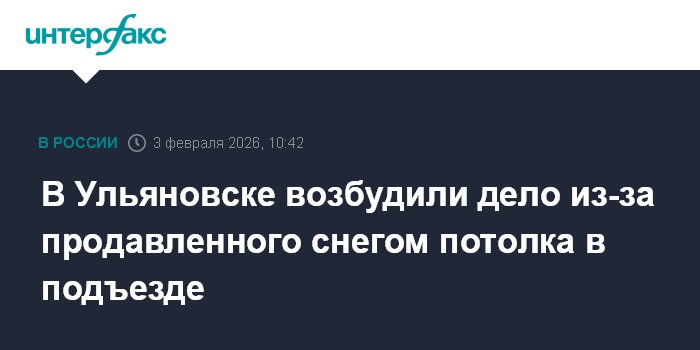 Москва. 3 февраля. INTERFAX.RU - В Ульяновске возбудили уголовное дело об обрушении потолочных перекрытий в подъезде многоквартирного дома на улице Ростовской из-за снега и протекавшей крыши, сообщило областное управление СКР.