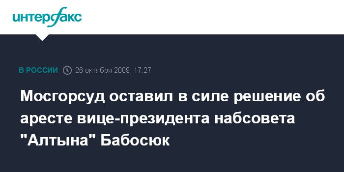 Мосгорсуд оставил в силе решение об аресте вице-президента набсовета "Алтына" Бабосюк