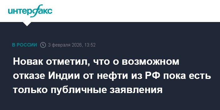 Новак отметил, что о возможном отказе Индии от нефти из РФ пока есть только публичные заявления