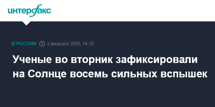 Москва. 3 февраля. INTERFAX.RU - Восемь вспышек класса М произошли на Солнце во вторник за неполные сутки, сообщили в Институте прикладной геофизики (ИПГ) имени Федорова.