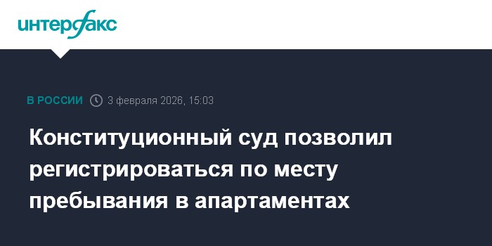 Москва. 3 февраля. INTERFAX.RU - Конституционный cуд РФ признал не соответствующими Основному закону нормы, мешающие собственникам и их родственникам регистрироваться в апартаментах по месту пребывания.