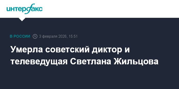 Москва. 3 февраля. INTERFAX.RU - Советский диктор, ведущая КВН и многих телепередач Светлана Жильцова умерла в возрасте 89 лет, сообщает во вторник Первый канал.