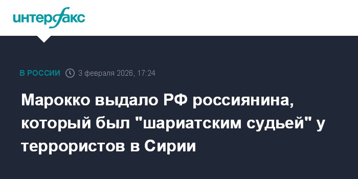 Москва. 3 февраля. INTERFAX.RU - Королевство Марокко выдало РФ россиянина Дмитрия Леонова, который в 2012 году выехал в Сирию, вступил в незаконное вооруженное формирование и стал "шариатским судьей", сообщила Генпрокуратура РФ во вторник.