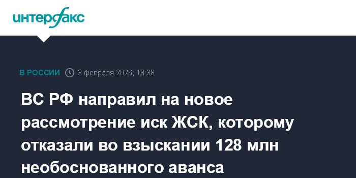 ВС РФ направил на новое рассмотрение иск ЖСК, которому отказали во взыскании 128 млн необоснованного аванса