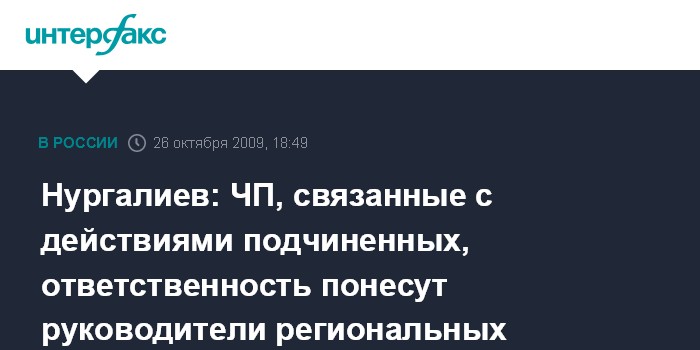 Москва. 26 октября. INTERFAX.RU - Глава МВД РФ Рашид Нургалиев предупредил руководителей региональных подразделений о персональной ответственности за любые ЧП, связанные с действиями подчиненных, сообщил официальный представитель министерства Валерий Грибакин.