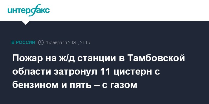Москва. 4 февраля. INTERFAX.RU - В результате происшествия на станции Кочетовка в Мичуринске, по уточненной информации на текущий момент, загорелись 11 цистерн с бензином и пять - с газом, сообщил глава Тамбовской области Евгений Первышов.