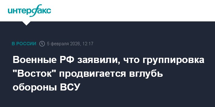 Москва. 5 февраля. INTERFAX.RU - Войска группировки "Восток" продвигаются вглубь украинской обороны, другие группировки за сутки улучшили позиции, сообщает министерство обороны РФ.